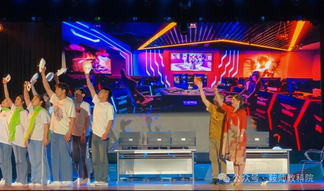 本次《一路花开》大型原创舞台思政剧演出,教科院师生积极参与。副书记翟晶与副院长金美琳两人共同担任副导演,并且客串剧中角色。同时,学前教育专业的孙文馨、王麓雯、杨谦赫等多名学生均有出色的表现,特别是2309班的杨谦赫同学饰演梁上这一重要角色,充分展现了角色勤奋艰苦、热爱生活的精神,彰显了当代大学生的美好品质。在其他演职人员方面,教科院二十余名学生作为舞蹈演员、剧务组工作人员参与演出中,认真负责完成工作,显示出了教科院学子出类拔萃的专业能力。